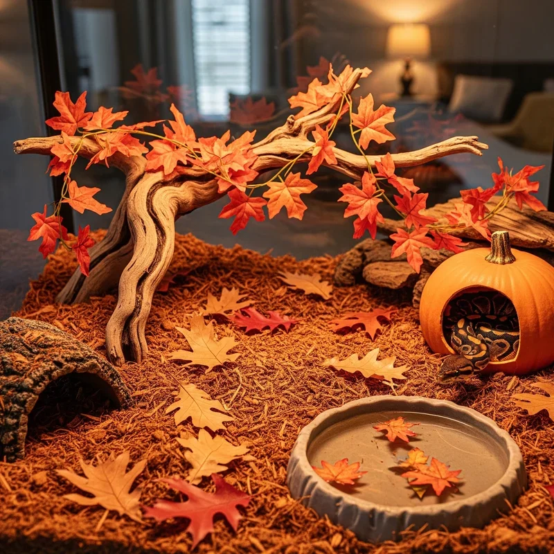 Keep your enclosure fresh and stimulating by rotating decorations seasonally while maintaining consistent care elements! Design spring setups with silk flowers and fresh green colors that brighten the habitat. Create autumn themes using artificial fall leaves and warm earth tones for cozy vibes. Develop winter wonderlands with white decorations and crystal-like elements (avoiding actual snow). Build summer scenes with tropical elements and vibrant colors that celebrate the season. Maintain consistent hides, water, and heating while changing decorative aspects for variety. Document each season with photos, creating a yearbook of your snake's changing home. This approach keeps you engaged while providing environmental enrichment through safe changes.