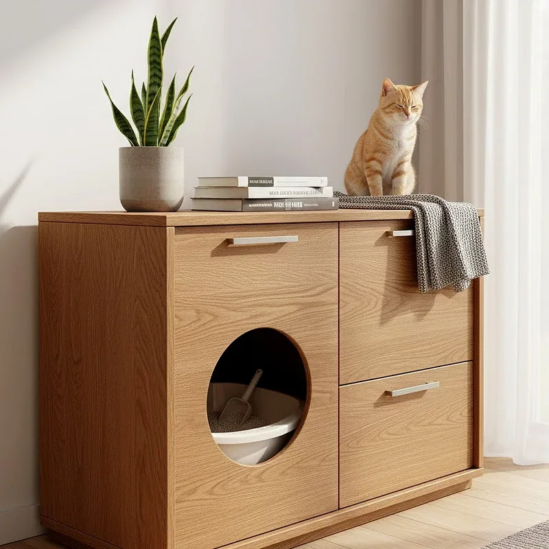 For those who appreciate contemporary design, a modern geometric litter box cover can become a striking accent piece that actually enhances your room's visual appeal. These covers feature clean lines, interesting angles, and often incorporate materials like acrylic, metal, or high-gloss finishes that scream modern sophistication. Think hexagonal shapes, triangular cutouts for entry, or cube designs with asymmetrical openings that look more like abstract art than pet furniture. The minimalist approach means these pieces won't overwhelm your space but instead complement other modern elements in your home. Some designs even include LED lighting features or mirror finishes that make them true statement pieces. Your design-savvy friends will be asking where you got that interesting sculpture, never suspecting it's actually serving a very practical purpose for your feline companion.