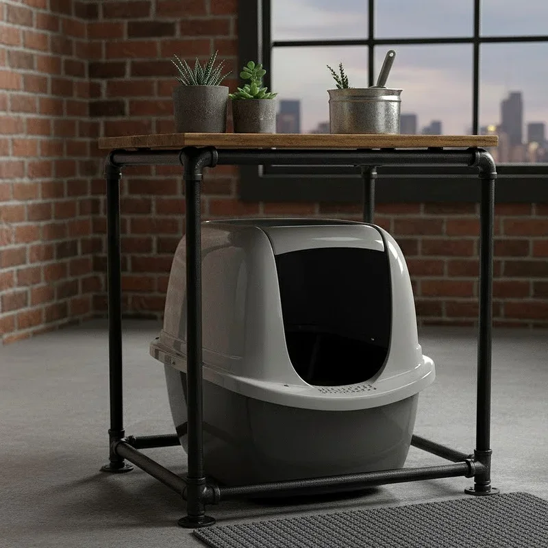 Channel your inner urban loft dweller with an industrial pipe frame litter box stand that adds raw, edgy appeal to your space. These stands typically feature exposed metal piping combined with reclaimed wood or metal mesh panels, creating a piece that wouldn't look out of place in a trendy Brooklyn apartment. The open framework design ensures excellent ventilation while the industrial aesthetic makes a bold statement about your design preferences. You can customize these pieces with different pipe finishes like matte black, copper, or galvanized steel to match your existing hardware and fixtures perfectly. The modular nature of pipe furniture means you can often adjust or expand these stands as needed, making them incredibly versatile. This style works particularly well in modern lofts, converted warehouses, or any space where you want to add an urban edge.