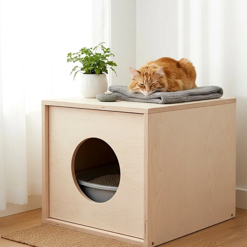 Embrace the minimalist beauty of Scandinavian design with a wooden box enclosure that exemplifies the principle of functional simplicity at its finest. These pieces feature clean lines, light wood tones, and often incorporate elements like hairpin legs or simple geometric cutouts for entry points. The uncluttered design allows them to blend seamlessly with Nordic-inspired interiors while providing your cat with a calm, enclosed space for their litter box. Many Scandinavian-style enclosures are designed with sustainability in mind, using eco-friendly materials and finishes that align with conscious living values. The top surface typically remains clear and functional, perfect for displaying a single statement piece or keeping completely minimal for that authentic Scandi look. These enclosures prove that pet furniture can be both highly functional and aesthetically pleasing without any unnecessary embellishments or complications.