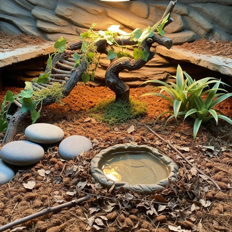 Construct an elaborate cave network using stacked slate, hollow logs, and commercial reptile caves to create a mysterious underground world for your bearded dragon to explore. Connect multiple hides with partially buried PVC pipes or hollow cork tubes, creating tunnels that satisfy your dragon's natural desire to investigate tight spaces. Vary the cave sizes and entrances to provide options for different moods, from cozy sleeping quarters to spacious lounging areas with multiple exit points. Use excavator clay to build custom cave entrances that blend naturally with the landscape, making the artificial elements look like genuine geological formations. This design provides excellent enrichment for curious dragons while offering plenty of privacy options during brumbing or when they simply want alone time. The cave system also creates valuable floor space underneath for additional exploration.