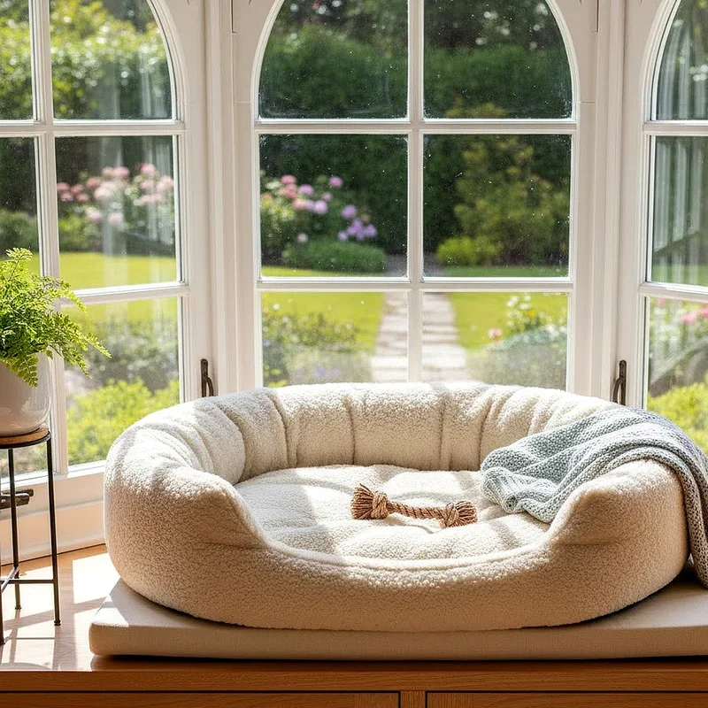 Specially designed calming beds help anxious dogs find peace through deep-pressure stimulation that mimics the comforting sensation of being held or swaddled gently. These beds typically feature extra-deep sides and ultra-soft materials that allow dogs to nestle deeply into the bed, triggering the release of calming hormones naturally. The circular shape and raised edges create a protective cocoon effect that helps nervous dogs feel secure during thunderstorms, fireworks, or separation from their humans. Many calming beds incorporate memory foam bases that contour to your dog's body, providing consistent support that reduces restlessness and promotes deeper, more restorative sleep cycles. Research shows that dogs sleeping in calming beds often display reduced anxiety symptoms, including less pacing, whining, and destructive behavior when left alone.
