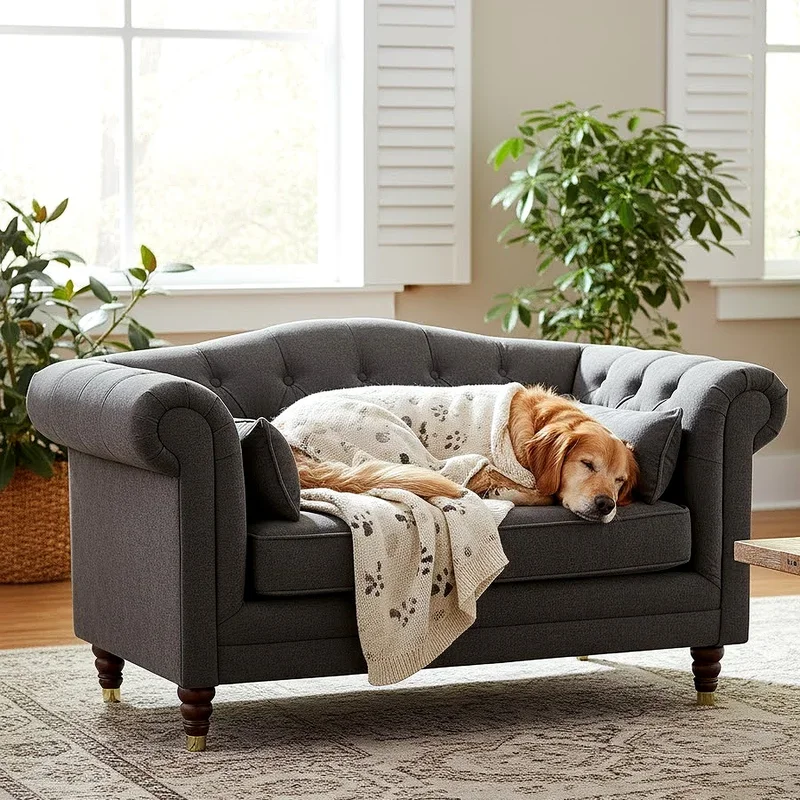 Why should humans have all the stylish furniture when your dog spends just as much time lounging around the house looking fabulous? Furniture-style dog sofas blend seamlessly with your home décor while providing your pup with their own sophisticated seating arrangement that matches your aesthetic perfectly. These miniature couches feature wooden or metal frames, upholstered cushions, and decorative details like tufting, nail head trim, or turned legs that mirror full-sized furniture pieces. Your dog gets the elevated sleeping surface they crave while you maintain a cohesive design scheme throughout your living space without sacrificing style for function. Available in various fabrics from leather to velvet, these beds prove that pet furniture doesn't have to look like an eyesore in your carefully curated home.