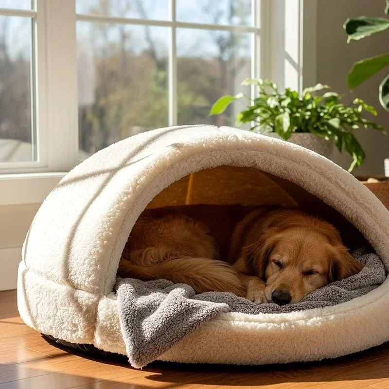 Does your dog disappear under blankets faster than you can say "bedtime"? Cave beds cater to natural burrowers who find comfort and security in enclosed spaces that mimic ancestral dens. These hooded havens feature a covered top section that creates a dark, cozy interior where anxious or nervous dogs can retreat from household chaos and overwhelming stimuli. The enclosed design helps regulate temperature naturally, keeping your pup warm in winter while the opening allows for ventilation during warmer months. Many cave beds include removable hoods for easy washing and seasonal flexibility, transforming from a cozy cave to an open bed when your dog wants variety. Small breeds like Dachshunds and Terriers particularly adore these beds, though you'll find sizes suitable for medium dogs who share that burrowing instinct.