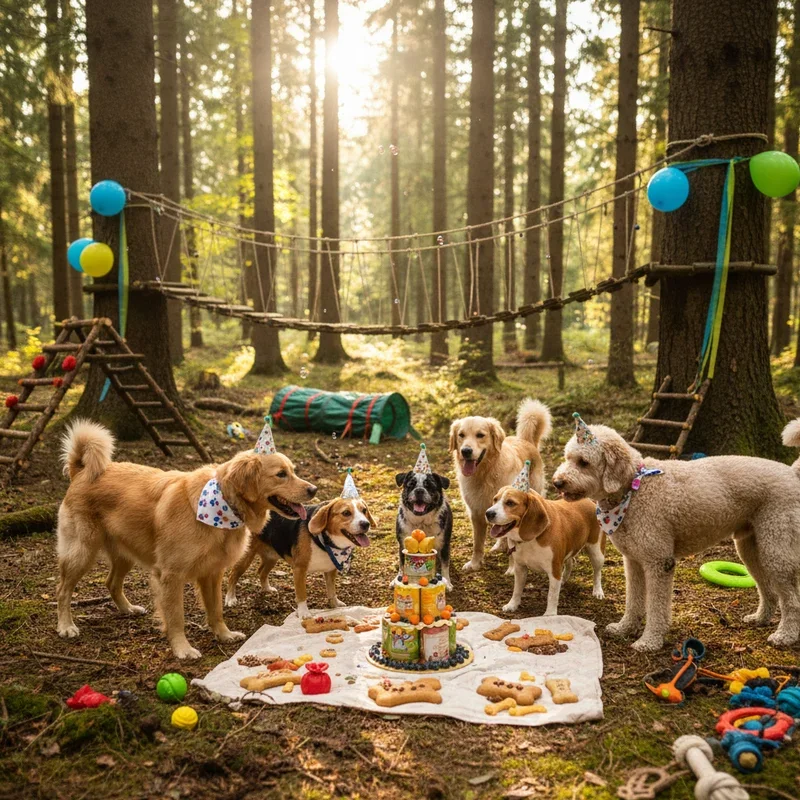 Take the party outside with an adventure-themed celebration that combines your dog's favorite activities with birthday fun! Plan a group hike to a scenic location where dogs can explore off-leash trails and discover new smells together. Pack a portable party kit with collapsible water bowls, birthday treats, and lightweight decorations you can set up at a rest stop. Organize a treasure hunt where dogs follow scent trails to find hidden birthday presents and treats along the path. Choose locations with water features where pups can splash and cool off after their adventure. Bring a wagon decorated with birthday banners to transport tired smaller dogs who might need a break. End the adventure at a dog-friendly café or park where you can set up a proper celebration area with more elaborate decorations.