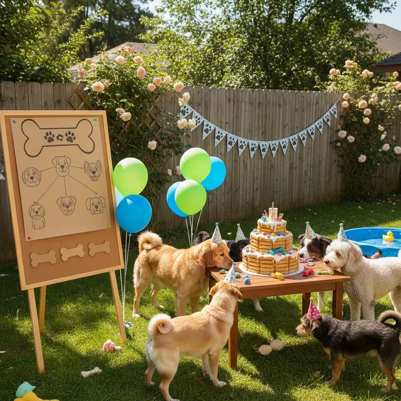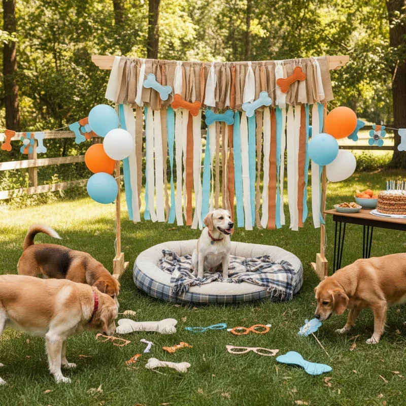 Transform your space into a birthday wonderland with decorations that create the perfect party atmosphere while being pet-safe! Choose latex-free balloons placed high enough to avoid curious mouths and potential choking hazards. Create a balloon arch entrance that makes every arrival feel special without endangering playful pups. Hang streamers and banners at heights where tails won't knock them down during enthusiastic play sessions. Use paw print confetti on tables and non-slip rugs with birthday themes to define party spaces. Set up LED string lights instead of candles for ambiance without fire risks. Design centerpieces using dog toys and treats that double as decorations and prizes. Include plenty of photo-worthy backdrops and signs with birthday messages for social media moments. Keep decorations simple enough to not overwhelm sensitive dogs while still creating a festive environment.