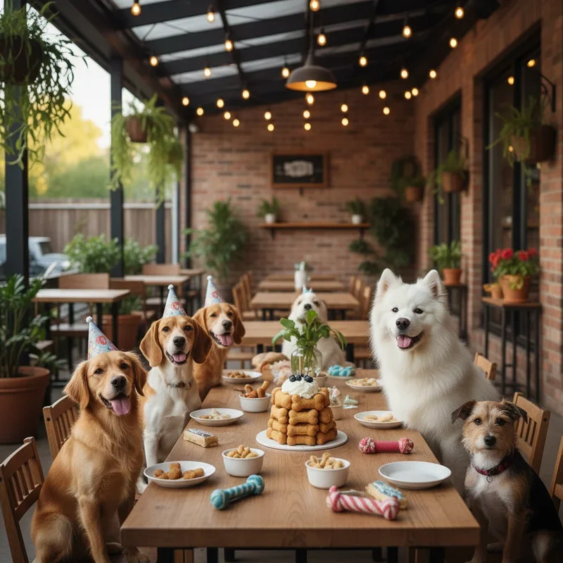 Take the party public by hosting your celebration at a dog-friendly restaurant or brewery with outdoor seating! Research venues that welcome dogs and can accommodate your group size with advance reservations. Coordinate with staff about bringing a dog cake and decorations to personalize the space. Choose restaurants with spacious patios where dogs have room to move without disturbing other diners. Bring portable water bowls and treats since not all establishments provide dog amenities. Consider timing your reservation during off-peak hours when the venue is less crowded and staff can be more attentive. Create a special menu card listing "puppy plates" you'll be serving to the four-legged guests. This option works great for smaller parties or dogs who enjoy new environments and socializing in public settings.