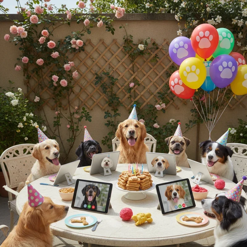 Include far-away friends and family in the celebration with a virtual party that brings everyone together online! Schedule a video call at a time that works across time zones and send digital invitations with the meeting link. Mail party boxes ahead of time containing treats, party hats, and toys so distant guests can participate fully. Plan virtual activities like a trick showcase where each dog performs via video or a costume parade. Create a birthday video montage with clips from friends who can't attend live, featuring birthday wishes and favorite memories. Set up multiple cameras to capture different angles of your local celebration for virtual attendees. Use screen sharing to display a slideshow of birthday pup photos from puppyhood to present. This inclusive option ensures no one misses the celebration regardless of geographic distance.