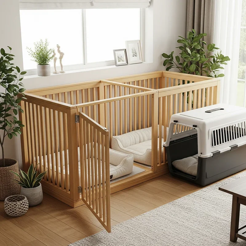 Elevate the basic wire crate into a comfortable haven with strategic additions that transform it from stark to spectacular! Start with a quality wire crate sized appropriately for your dog's breed and weight, ensuring they can stand, turn, and stretch comfortably. Add a waterproof crate cover that creates a den-like atmosphere while reducing visual stimulation for anxious dogs. Layer comfortable bedding including orthopedic mats for joint support and washable blankets for warmth and comfort. Attach crate fans for air circulation during warm months and heating pads for winter comfort. Include hanging water bottles and slow-feed bowls that attach securely to prevent spills and messes. Position the crate in a quiet corner where your dog can observe family activities without being in high-traffic areas.