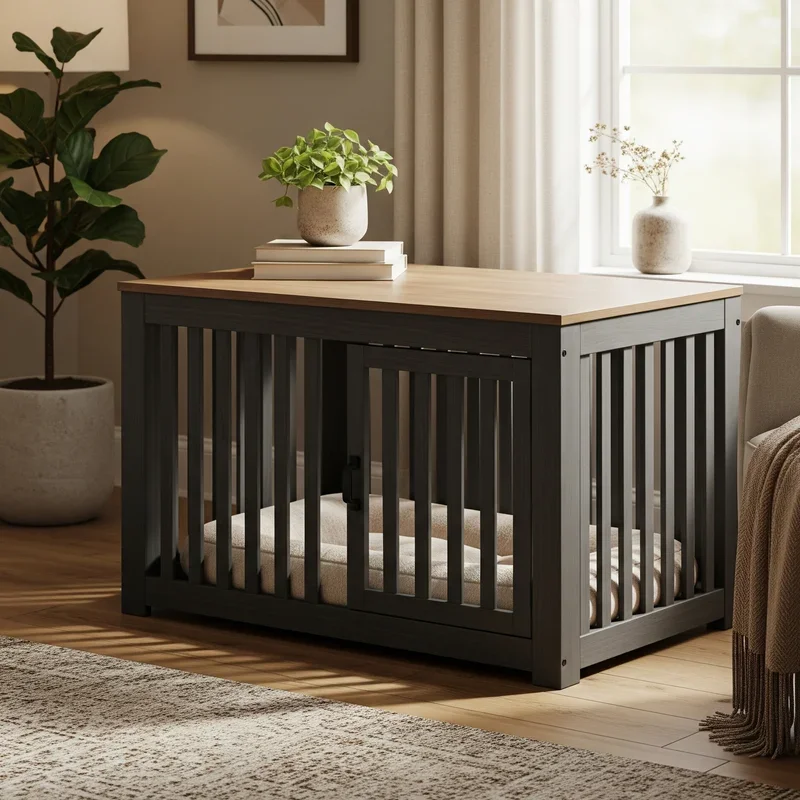 Transform your dog's crate into a stylish piece of furniture that seamlessly blends with your home's aesthetic! These dual-purpose kennels serve as end tables, TV stands, or window benches while providing your pup with a cozy retreat. Choose from rustic farmhouse designs with barn doors to sleek modern pieces with clean lines and metal accents. The solid construction eliminates the institutional look of wire crates while maintaining proper ventilation through decorative cutouts or mesh panels. Add a plush cushion that matches your decor, and suddenly your dog's space becomes a design feature rather than an eyesore. Many models include storage drawers for toys and supplies, maximizing functionality in small spaces. Your guests won't even realize it's a dog kennel until your pup happily trots inside for naptime!