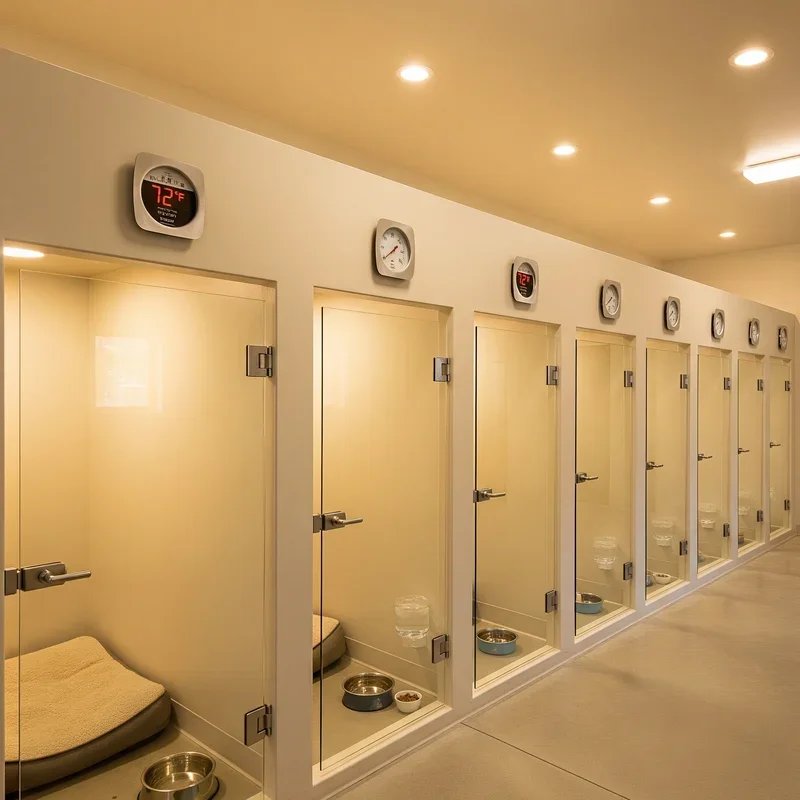 Invest in your dog's comfort with a kennel featuring heating and cooling systems that maintain ideal temperatures year-round! Install a mini-split system or portable AC/heater designed for small spaces, ensuring your pup stays comfortable regardless of weather. Add proper insulation to walls and roofing, maximizing energy efficiency while maintaining consistent indoor temperatures. Include humidity control to prevent mold growth and maintain healthy air quality for your dog's respiratory system. Install smart thermostats that allow remote monitoring and adjustment through your smartphone for peace of mind. The climate control extends your dog's outdoor time safely, preventing heat stroke in summer and hypothermia in winter. This investment particularly benefits breeds sensitive to temperature extremes, senior dogs, or those with health conditions.