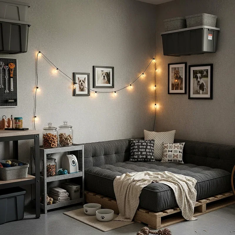 Transform a section of your garage into a climate-controlled dog zone perfect for pets who need a quieter space away from household chaos! Install proper insulation and heating/cooling to maintain comfortable temperatures year-round. Add rubber flooring for joint support and easy cleaning, and create defined areas for sleeping, eating, and playing. This space works wonderfully for multiple dogs who need separate areas or for dogs recovering from surgery who need limited movement. Include proper ventilation and consider adding a pet camera to monitor your pup remotely. The garage location provides easy outdoor access while maintaining a controlled environment, making it ideal for senior dogs or those with special needs.