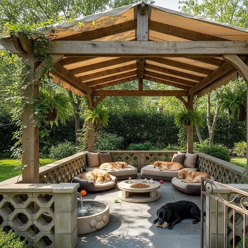 Extend your dog's living space outdoors with a covered patio nook that offers fresh air and protection from the elements! Build or buy a weather-resistant dog house with an attached covered area featuring outdoor cushions and elevated beds. Install a misting system for hot days and consider adding outdoor-safe heating elements for cooler weather. Use artificial turf for easy cleaning and add some potted plants (dog-safe only!) to create a natural paradise. This outdoor retreat gives your dog options throughout the day, especially if they love spending time outside but need shade and comfort. Include a doggy door if possible, allowing independent access between indoor and outdoor spaces.