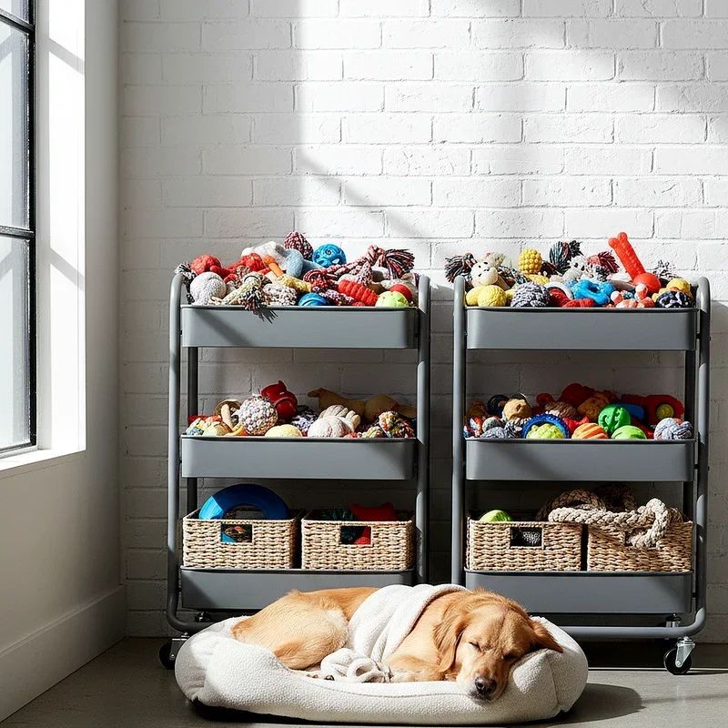 Rolling storage carts bring incredible flexibility to your dog toy organization system. These mobile units allow you to transport toys from room to room as needed, making them perfect for families who move throughout the house during the day. Picture having all your pup's favorite playthings readily available whether you're watching television in the den or cooking in the kitchen. Most rolling carts feature multiple tiers, providing separate compartments for different toy categories. You might dedicate one level to chew toys, another to balls, and a third to stuffed animals. This categorization helps you quickly locate specific items during playtime. The wheels lock in place when you need stability, and many designs include additional features like hanging hooks for leashes or small drawers for treats and grooming supplies.