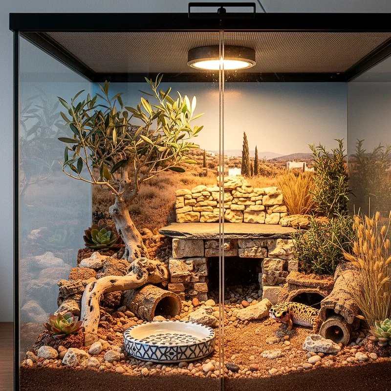 Bring the charm of Mediterranean landscapes into your gecko terrarium with drought-tolerant plants and sun-bleached aesthetics. This setup works wonderfully for species tolerating moderate humidity with occasional dry periods throughout the season. Use a mixture of sandy loam substrate that drains well while supporting hardy plant species like succulents and herbs. Incorporate driftwood pieces and smooth river rocks to create a naturalistic appearance reminiscent of coastal regions. Plant selections might include small aloe varieties, sedum, and other xerophytic plants that thrive in similar conditions. This theme offers visual appeal while remaining relatively low-maintenance compared to more demanding tropical setups. The Mediterranean approach provides adequate hiding spots without overwhelming the space, maintaining an open, airy feeling. Your gecko benefits from varied textures and temperatures while you enjoy a terrarium that evokes vacation memories.