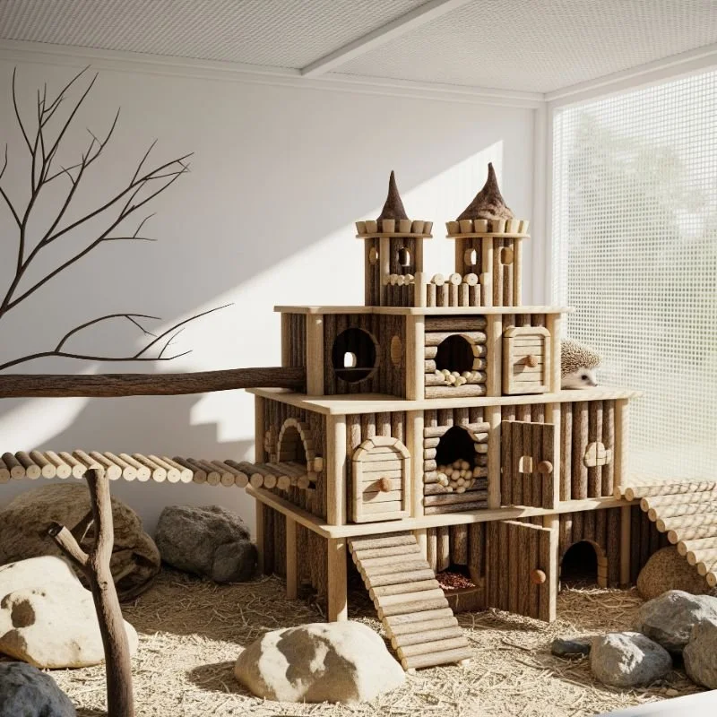 Why limit your hedgehog to ground floor living when they can have a penthouse view? Multi-level cages maximize vertical space while giving your hedgie an exciting environment to explore. Create levels using wooden platforms covered in fleece, connected by gentle ramps with grip strips. Each floor serves a different purpose: ground level for exercise and feeding, second floor for sleeping quarters, and maybe a third floor observation deck! Your hedgehog becomes a tiny mountaineer, building muscle tone while satisfying their curiosity. Safety comes first, so ensure gaps between levels are hedgie-proof and add side rails to prevent tumbles. Use C&C grids or modified ferret cages as your base structure. The vertical design keeps their space interesting without eating up your floor space. Watching your hedgehog navigate their personal skyscraper is entertainment gold, especially when they discover shortcuts between floors!