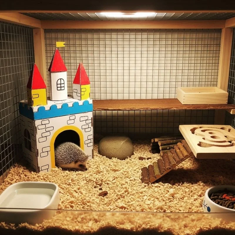 Challenge your hedgehog's intelligence with a cage designed as one giant puzzle! Create treat-dispensing stations requiring different skills: pushing, pulling, or lifting to access rewards. Install sliding panels that reveal hidden passages when moved correctly. Use puzzle feeders that slow eating while providing mental stimulation. Add interactive toys that change weekly to maintain interest. Design a maze system using moveable walls for variety. Include foraging areas where daily kibble gets scattered among safe materials. The puzzle elements encourage natural problem-solving behaviors while preventing boredom. Start with simple challenges and gradually increase difficulty as your hedgehog masters each level. This setup particularly benefits young, active hedgehogs needing mental stimulation. Document their problem-solving progress for adorable memories. The interactive nature strengthens your bond through training sessions. Your hedgehog develops confidence and skills while staying entertained. The mental exercise tires them out as effectively as physical activity!