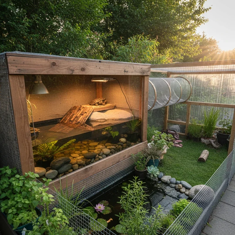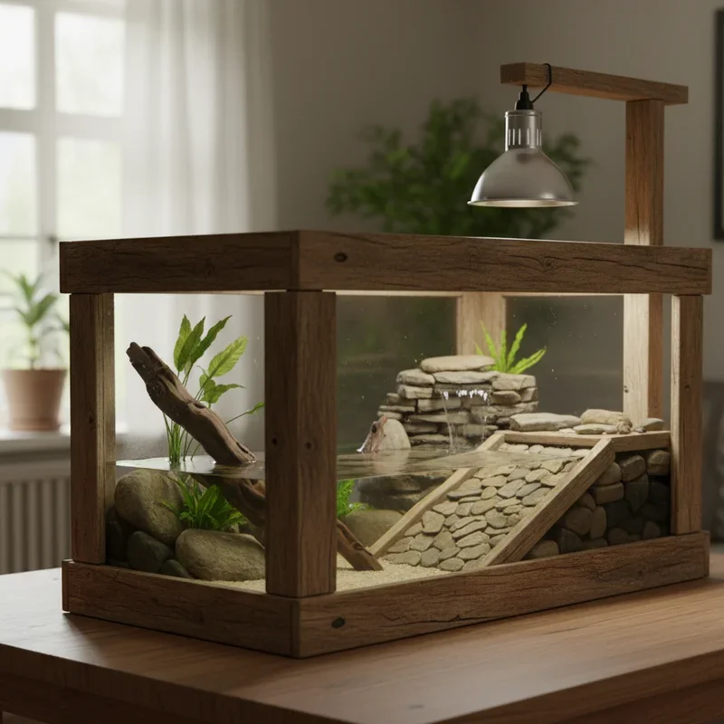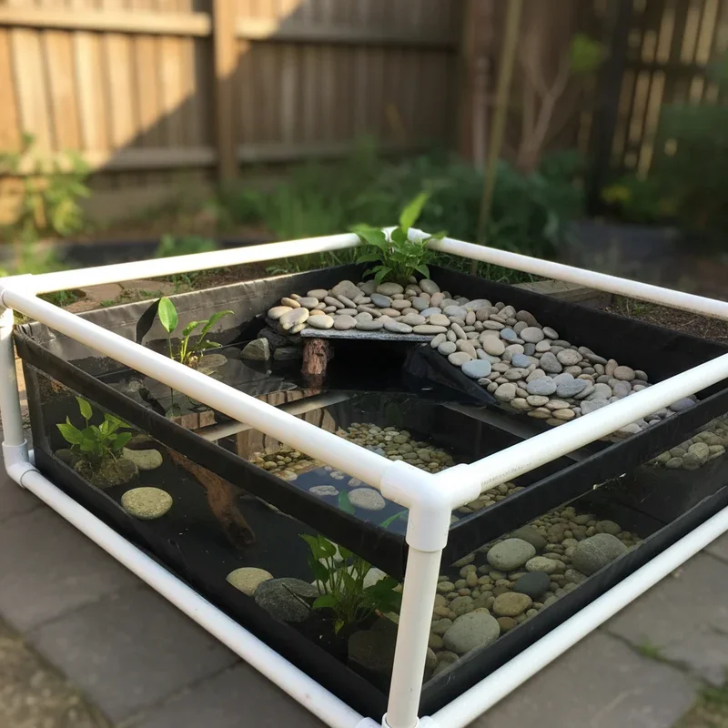 Engineer a lightweight yet sturdy turtle habitat using PVC pipes and pond liner! This design assembles like an adult LEGO set with endless configuration possibilities. Connect PVC pipes with elbows and tees to create your frame, no glue needed for easy modifications. Drape pond liner inside, securing with clips or zip ties for a watertight basin. Add cross-braces for stability and to support basking platforms or decorations. The frame disassembles for moving or storage when needed. Paint PVC for aesthetics or leave white for a clean, modern look. Include built-in plumbing for filters and drains using the PVC structure itself. This system costs less than $200 for surprisingly large enclosures. Your innovative design proves engineering skills trump expensive equipment!