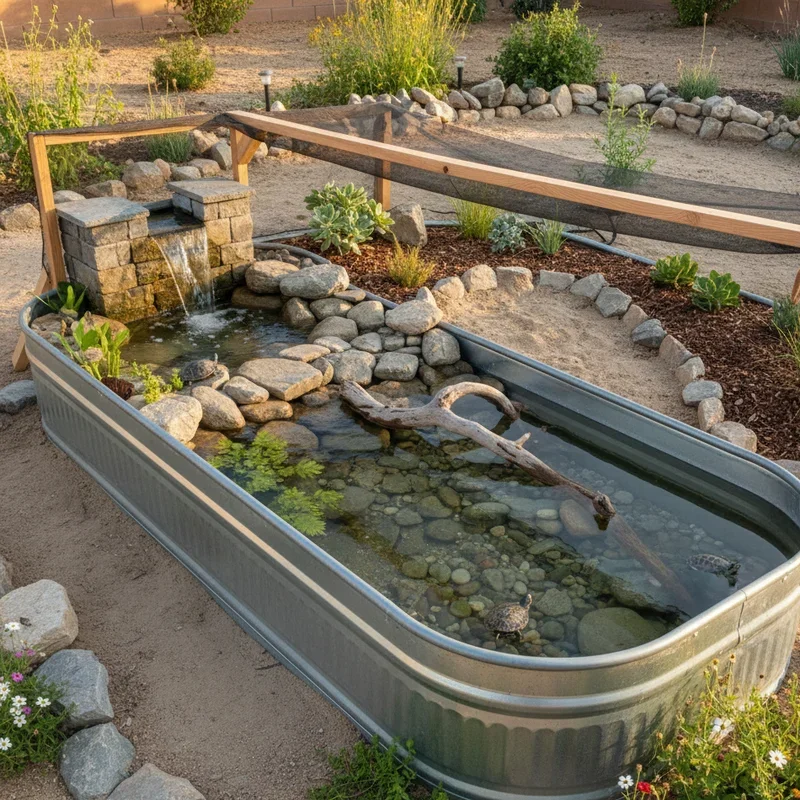 Transform a galvanized stock tank into a turtle paradise that's both affordable and incredibly durable! These agricultural tanks, designed for livestock water, make perfect turtle homes with minimal modification. Available in various sizes from 50 to 300 gallons, they're substantially cheaper than aquariums of similar capacity. The oval or round shapes provide excellent swimming space while the sturdy metal construction lasts decades. Add a basking platform using egg crate light diffuser or build a floating dock with PVC pipes and mesh. Install a canister filter through a simple bulkhead fitting drilled into the side. The metallic finish actually looks quite stylish in modern homes! Position near a window for natural light or add a UV basking lamp on an adjustable arm. Your turtle gets a spacious home while you save hundreds compared to traditional setups!
