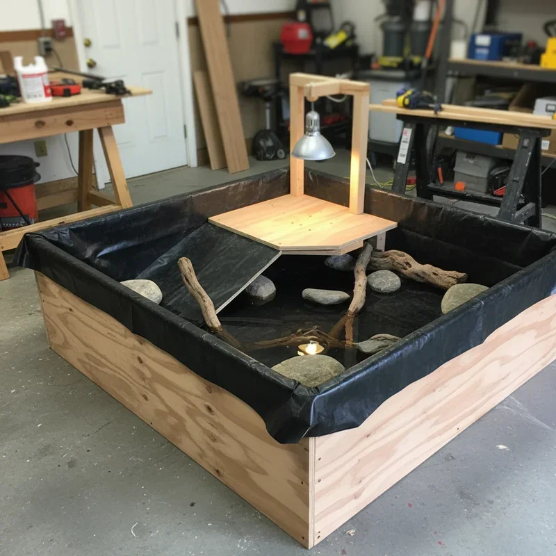 Build a custom plywood tank that combines affordability with complete design freedom! Use marine-grade plywood or seal regular plywood thoroughly with pond sealant. Construct a basic box with reinforced corners and cross-bracing for larger sizes. Line with EPDM pond liner, securing edges with battens for a clean finish. This method costs a fraction of glass while allowing enormous tanks. Add an acrylic viewing panel to the front for underwater observation. Build integrated stands and filtration compartments into the design. The plywood exterior accepts any finish from paint to tile to wood stain. Include hinged access panels for equipment maintenance without disturbing your turtle. Your custom creation provides professional features at DIY prices!