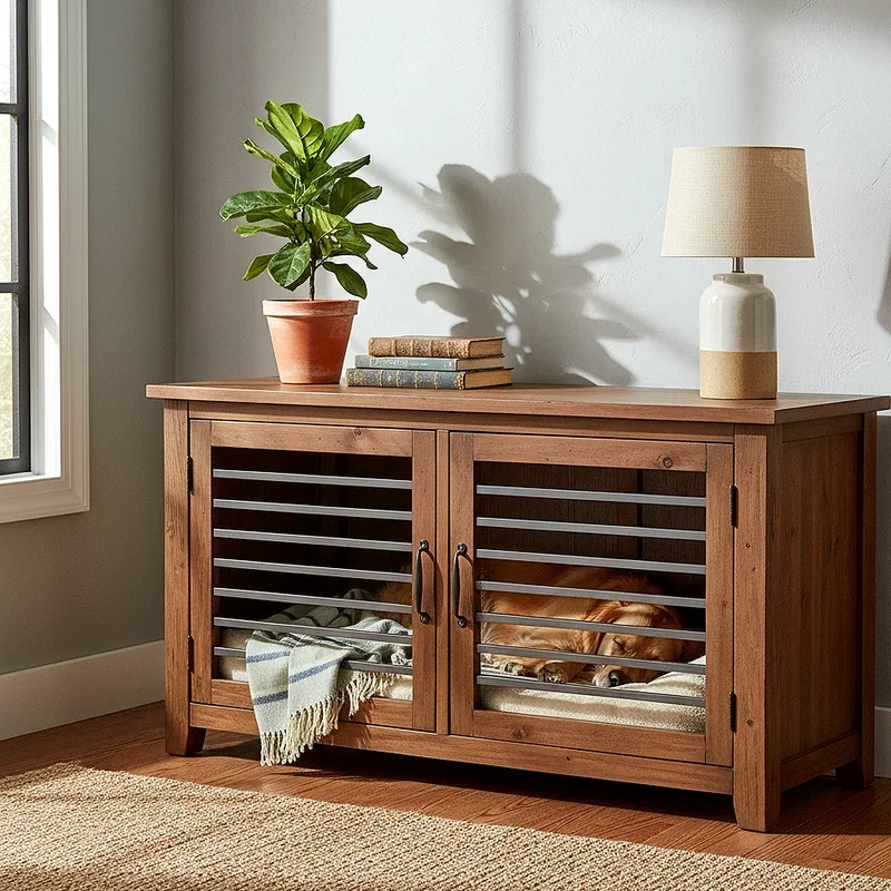 Using a dog kennel as a functional room divider addresses spatial challenges while creating distinct zones within open-concept living areas that many modern homes feature. This approach works particularly well in studio apartments or great rooms where defining separate areas enhances both functionality and visual appeal. A substantial, attractive kennel positioned strategically can separate living and dining spaces, create a home office boundary, or divide sleeping areas in shared bedrooms. Choose designs with appealing aesthetics from all viewing angles, ensuring the kennel enhances rather than detracts from both spaces it divides. This placement allows your dog to remain centrally located and involved in household activities from multiple rooms simultaneously. The room divider approach proves especially valuable for social dogs who dislike isolation but still need their own defined territory.