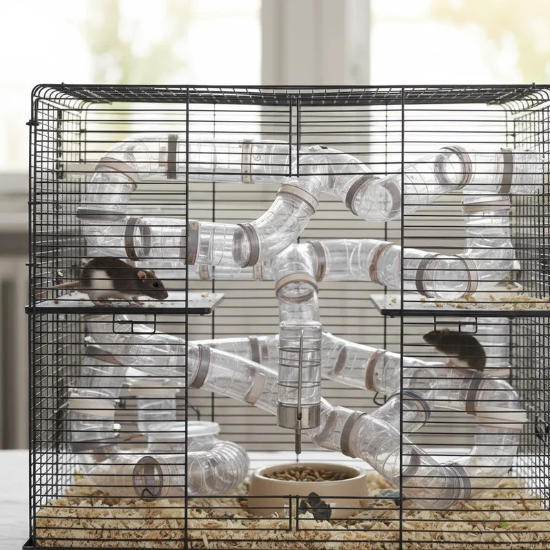 Rats are natural tunnel explorers, and creating an elaborate tunnel system will tap into their burrowing instincts perfectly! Use PVC pipes, cardboard tubes, or flexible dryer hoses to build interconnected pathways throughout the cage. Create junctions where multiple tunnels meet, offering route choices and surprise encounters with cage mates. Transparent tubes let you watch the action, while opaque ones provide security. Vary tunnel diameters to accommodate different rat sizes and create interesting challenges. Add ventilation holes in longer tunnels for air circulation. Position exits near food, water, or favorite lounging spots. Your rats will use tunnels for playing chase, hiding treats, and quick transportation between cage areas. Regular tunnel rearrangement keeps the environment novel and exciting!