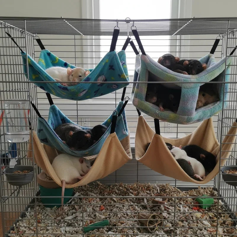 Rats absolutely adore hammocks, and creating a hammock paradise will have them snoozing in suspended bliss! Hang multiple hammocks at different heights and angles to accommodate all your rats' preferences. Some love deep, pocket-style hammocks for burrowing, while others prefer flat hammocks for sprawling. Use various materials like fleece, cotton, or even old t-shirts to create different textures and comfort levels. Double-decker hammocks save space while providing options for rats who like sleeping together or separately. Position hammocks near platforms for easy access, ensuring older or less agile rats can still enjoy them. Rotate different hammock styles weekly to keep things interesting. Add small blankets or fabric scraps inside for extra nesting material. The gentle swaying motion helps relax anxious rats and promotes better sleep. Your rats will spend hours lounging in their aerial beds!