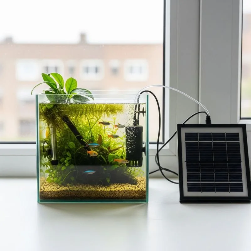 Harness natural sunlight with a window sill aquarium that practically maintains itself! Position a shallow 4-gallon tank where it receives bright, indirect light for part of the day. This natural lighting grows algae and plants without electricity, creating a sustainable ecosystem. Stock it with algae-eating fish like otocinclus or small plecos that thrive on the natural growth. Add hardy plants like Java moss and hornwort that love bright light. The temperature fluctuations from day to night mimic natural environments, benefiting many fish species. Solar-powered air pumps provide oxygenation without electrical cords. Maintenance involves managing algae growth through fish feeding and occasional glass cleaning. Some aquarists report going months without water changes in well-balanced window tanks. It's like having a slice of pond life indoors, powered entirely by the sun!