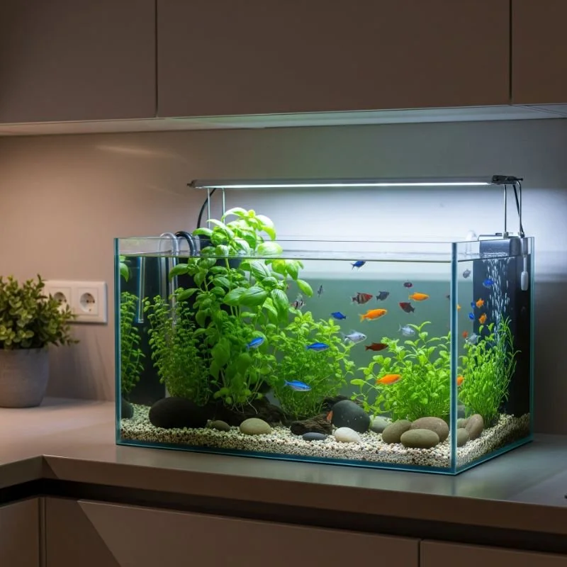 Combine your love of cooking and fish keeping with an innovative herb garden aquarium! These clever systems use fish waste to fertilize herbs growing on top while the plants help filter the water below. A compact 5-gallon setup fits perfectly on your kitchen counter, growing basil, mint, or cilantro while housing a betta or some guppies. The symbiotic relationship means less frequent water changes and free herbs for dinner! Modern aquaponics kits include everything needed, from grow lights to planting pods. Your fish provide nutrients, the plants clean the water, and you get fresh herbs year-round. Maintenance involves occasional plant trimming and monthly filter cleaning. It's sustainable living at its finest, turning your kitchen into a mini ecosystem that produces food while looking fantastic.