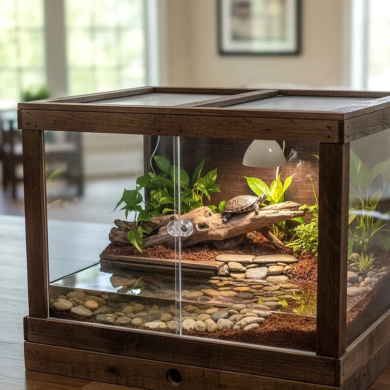 Not everyone has space for massive aquariums, but that doesn't mean compromising on quality! Turtle tables, essentially large, shallow containers on legs, provide excellent housing for species that don't require deep water. Think of it as a coffee table that houses your pet, combining functionality with fascinating entertainment. These setups work brilliantly for map turtles, mud turtles, and hatchlings of larger species. You can create distinct zones including a shallow water area, a sandy beach, and a planted terrestrial section. The open-top design allows for better air circulation and makes interaction with your pet easier, though you'll need to ensure the sides are tall enough to prevent any great escape attempts.