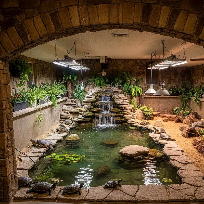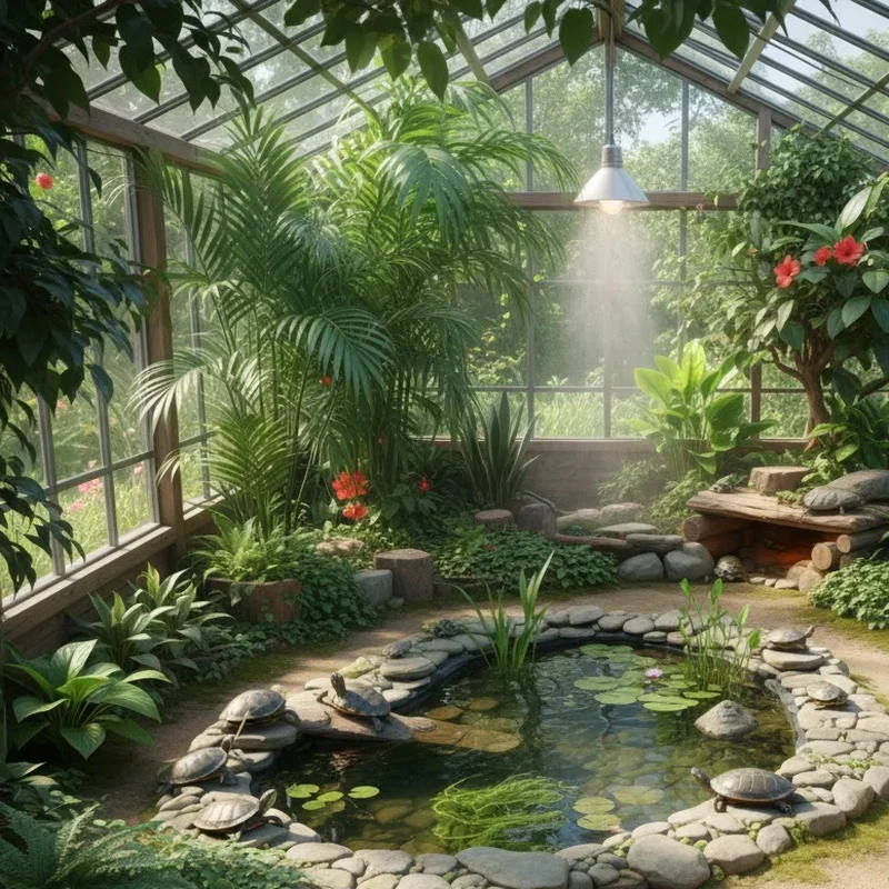 Transform a small greenhouse into a year-round tropical paradise where your turtles can thrive regardless of outdoor weather! This setup offers the best of both worlds, combining natural sunlight with climate control for optimal conditions. You can create multiple pools at different temperatures, surrounded by edible plants like water lettuce, duckweed, and even vegetable gardens that serve double duty as food sources. The greenhouse environment maintains perfect humidity levels naturally, reducing respiratory issues common in dry indoor settings. Installing automatic misters, grow lights for cloudy days, and temperature-controlled ventilation creates a self-sustaining ecosystem. Your turtles will exhibit more natural behaviors in this enriched environment, from foraging to sunbathing under real UV rays.