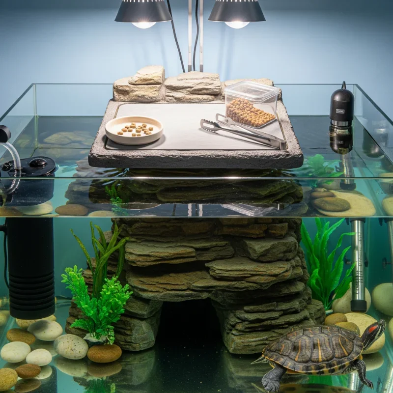 Establish designated feeding areas that keep tanks cleaner while making feeding time more efficient and enriching. Mealtime made manageable! Create floating feeding platforms or rings that contain food in specific zones. The contained area prevents food from scattering throughout the tank. Automatic feeders mounted above stations ensure consistent feeding schedules. Different stations for different food types organize varied diet offerings. Suction cup platforms adjust to water levels and turtle sizes easily. The predictable location helps turtles associate areas with feeding time. Clear feeding dishes allow easy monitoring of consumption and leftovers. Your feeding station becomes a management tool that simplifies care while reducing waste and water pollution.
