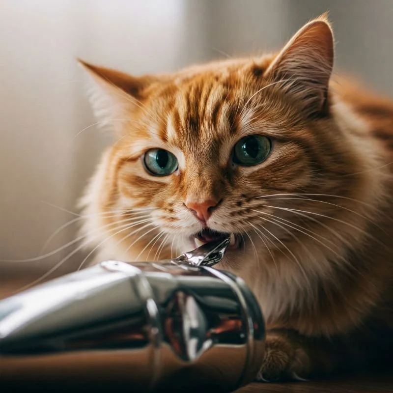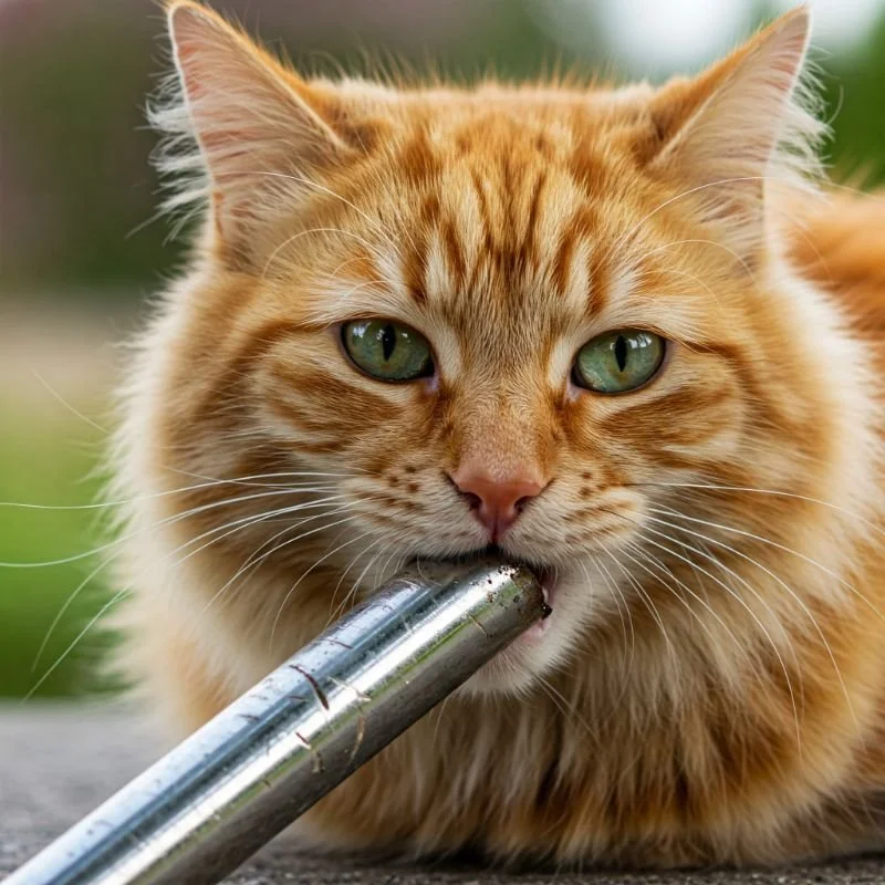 When you catch your cat approaching a metal object with that gleam in their eye, gently intervene and offer the alternative. With consistency, most cats will learn to redirect their chewing instincts.